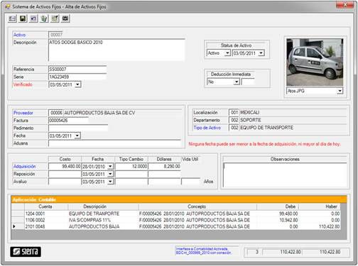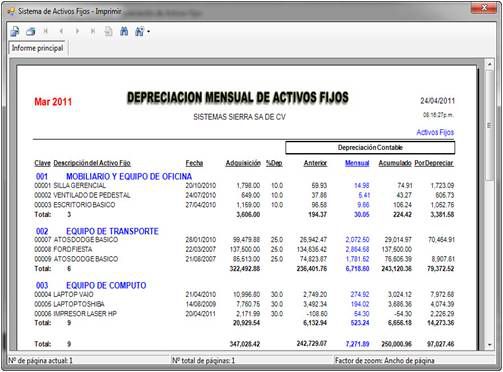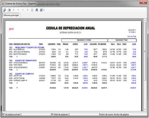 Genera cédula de depreciación anual fiscal y depreciación contable mensual y anual, con opción a deducción inmediata.
