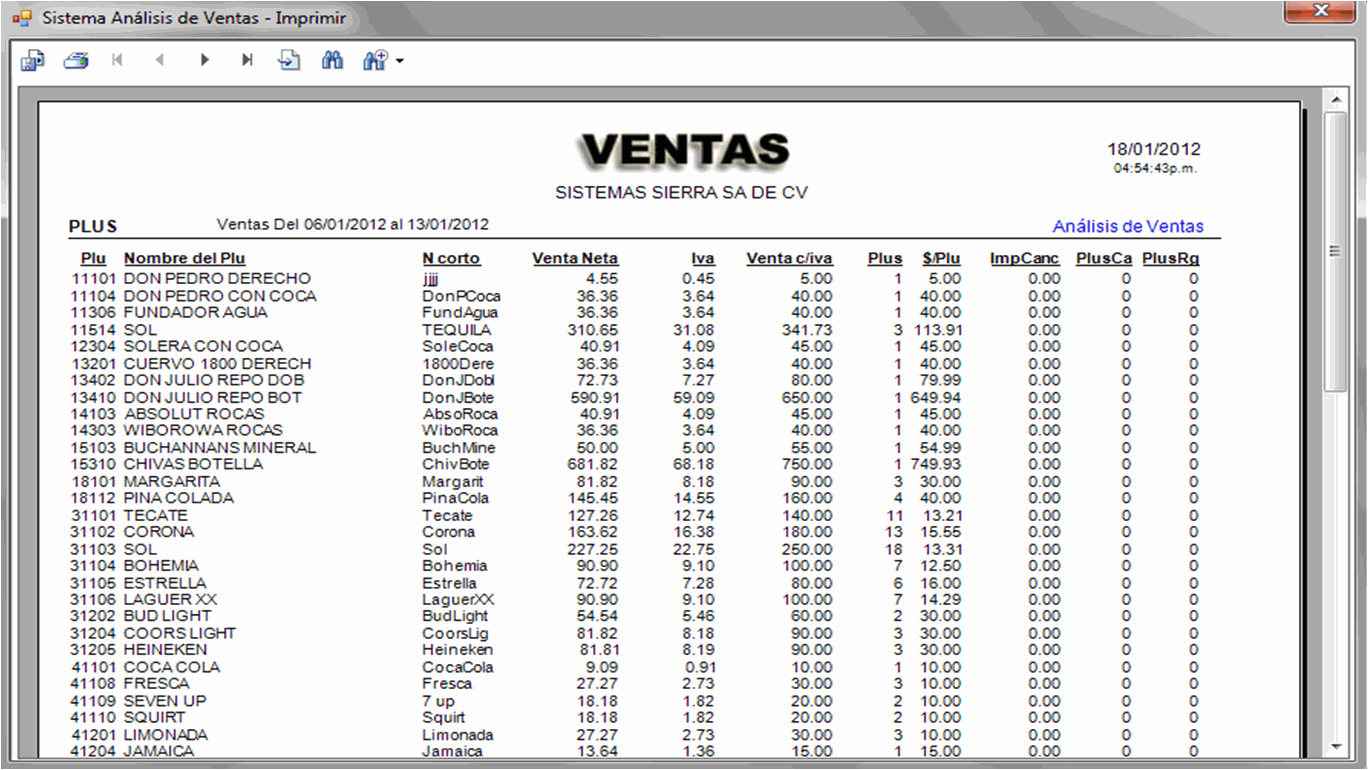 Anual concentrado. exhibe la venta anual de 50 conceptos por mes