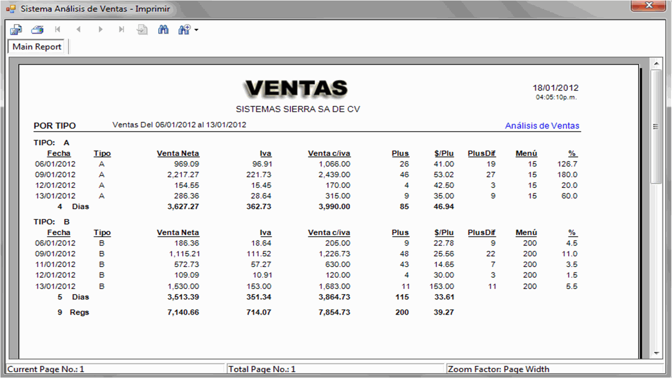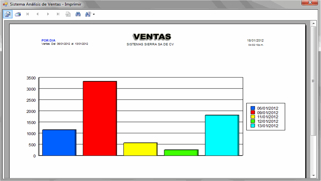 resumen. Exhibe concentrado de la venta por rango de fechas