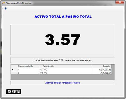 Ofrece un panorama general del estado financiero de la empresa. Es una relación entre el total de activos y el total de pasivos.