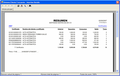 Exhibe en la nota del cliente: el saldo anterior, los consumos y el saldo actual.