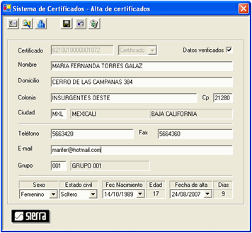 Puede asignarle datos personales al certificado.