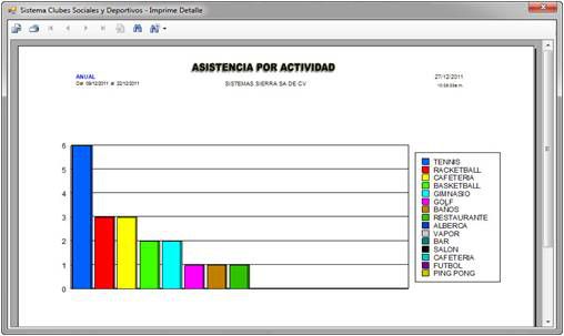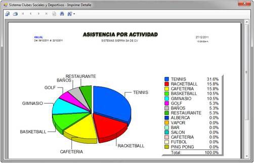 Exhibe gráficas de uso de instalaciones del día, mensual y anual. Por empleado, actividad y hora.