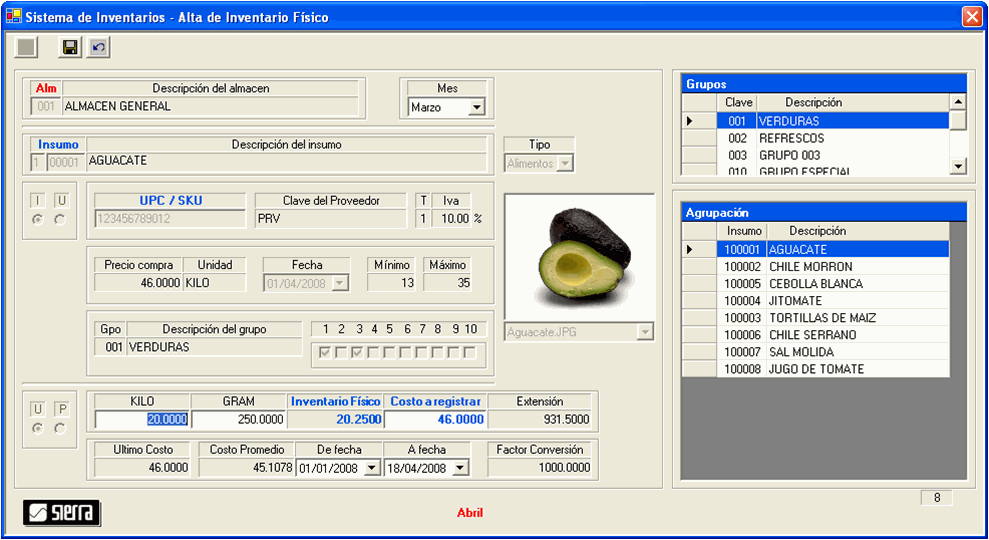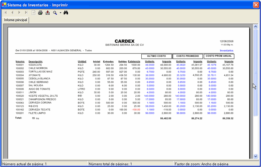 Exhibe informes valuados a último costo, costo promedio o costo promedio anual.