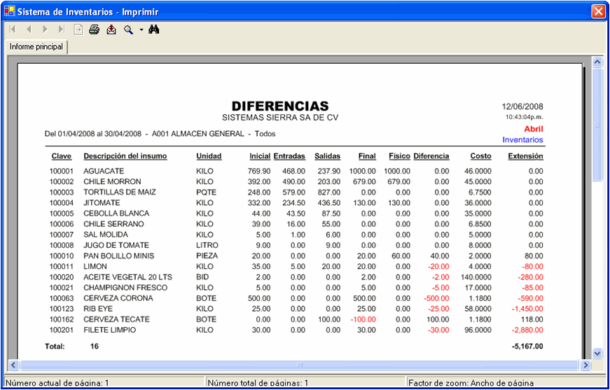 Compare su inventario físico contra su inventario en el sistema mediante un reporte de diferencias.
