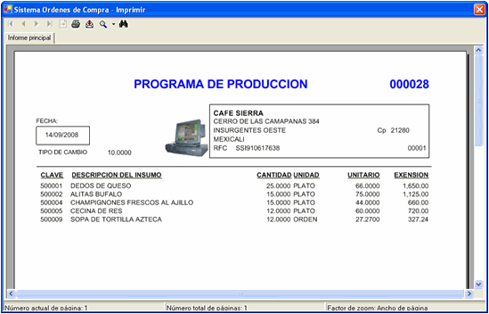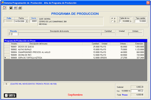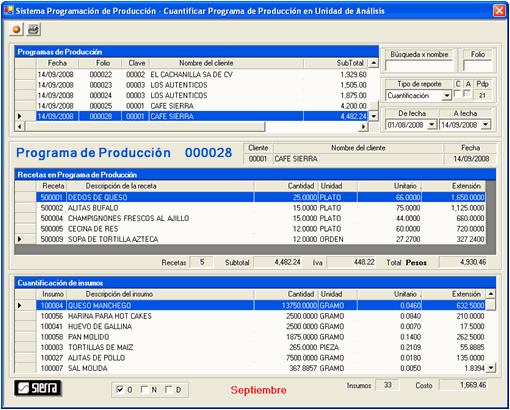 Obtenga un listado de los insumos necesarios par ala preparación de este programa de producción..
